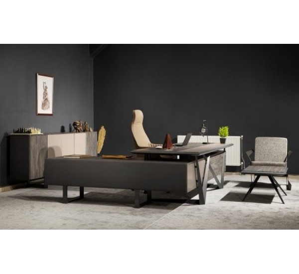 Vip Makam Takımları modellerimizden olna Valens Makam Takımı ağırlıklı olarak metal üzeri statik fırın boyalı metal malzemelerden oluşmaktakır.Ahşap kısımları çizilmelere karşı dayanıklı melamin malzemedir.Etejer kısmında bulunan çekmeceleri teleskopik raylıdır.Dolap ve etejer kısmında bulunan kapaklar frenli menteşelidir.Etejer kısmında kasa modülü bulunmaktadır.Etejer kısmı montaj sırasında sağa veya sol tarafa ofisin şekline göre kurulmaktadır.Valens Ofis Makam Takımı alternatif renklerde üretilmektedir.