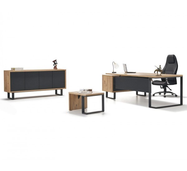 Günümüzün estetik çizgilerine sahip Zeta Ofis Takımı masası ile bir bütün olan etejer,dolap ve sehpadan oluşmaktadır.Etejer kısmı masanın her iki tarafına monte edilebilmektedir.Zeta Ofis Takımı'nda bulunan kapaklar mdf üstü mebran kaplama olup basmatik sistemlidir.Etejer kısmındaki çekmeceler frenli basmatik sistemlidir.Ahşap kısımlar 30mm.kalınlığında yongapan malzemedir ve kenar kısımlar 2mm.pwc ile kaplıdır.Ofis Takımı'nın ayak kısımları metal profilden oluşmaktadır ve statik fırın boyalıdır.Ofis Masası 200x80 ve 220x90 olarak iki ayrı ölçülerde üretilmektedir.Etejerin 20cm.çıkıntısı bu ölçülere dahildir.Zeta Ofis Takımı alternatif renklerde müşterilerimizin isteğine göre hazırlanmaktadır.Zeta Ofis Mobilyası ile gerekli bilgi için bizimle iletişim kurabilirsiniz.