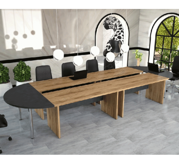 Ürün malzemesi tamamı ile 30mm. kalınlığında çizilmeye karşı dayanıklı melamin malzeme olup,kenar jumba kısımları ise darbelerden etki görmeyen 2mm.PWC'dir.Toplantı masası istenilen ölçülerde ve istenilen renklerde üretimi yapılması mümkündür.